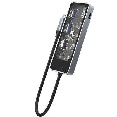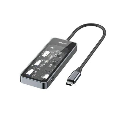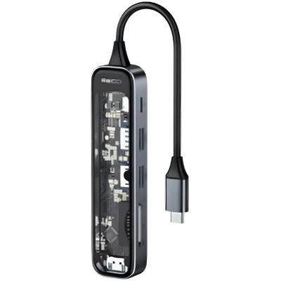 HUB адаптер 6в1 RECCI RH21 USB-C TRANSPARENT GREY