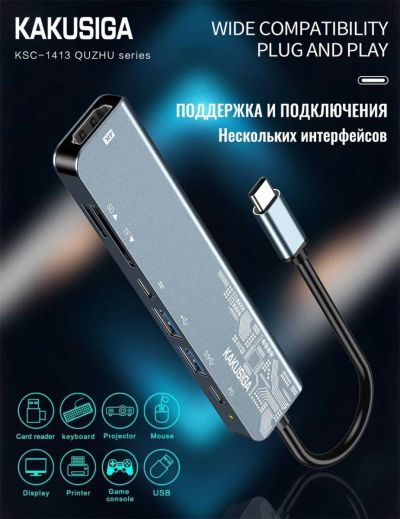KAKUSIGA KSC-1413 OTG TYPE-C to 2A2C,HDMI,SD,TF 60W METALL