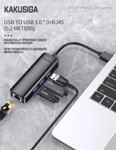 KAKUSIGA OTG KSC-1409A USB-A to 3*USB-A+RJ45 Black