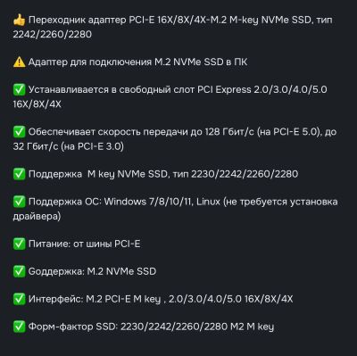 PCIe m2 NVMe Адаптер PCI Express X16 X8 X4